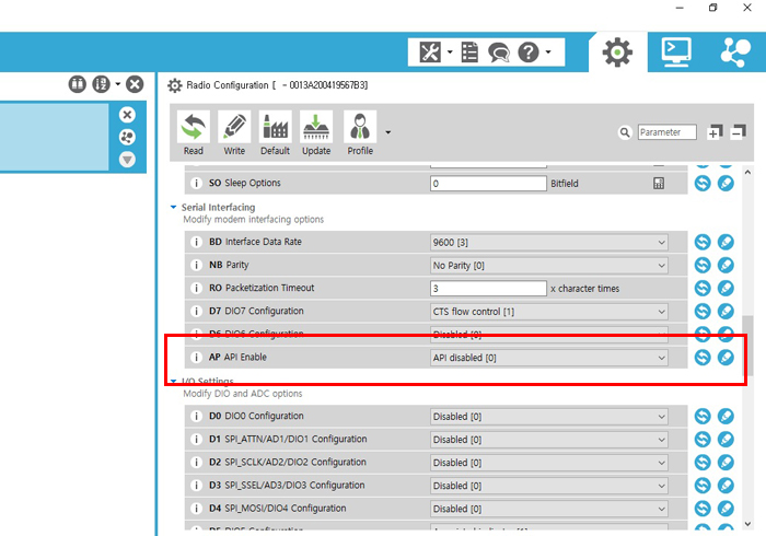 마찬가지로 세팅에서 API 모드로 변경할수도 있는데 이것은 XBee 클래식이나 XBee S2C 시리즈 모두 변경이 가능합니다