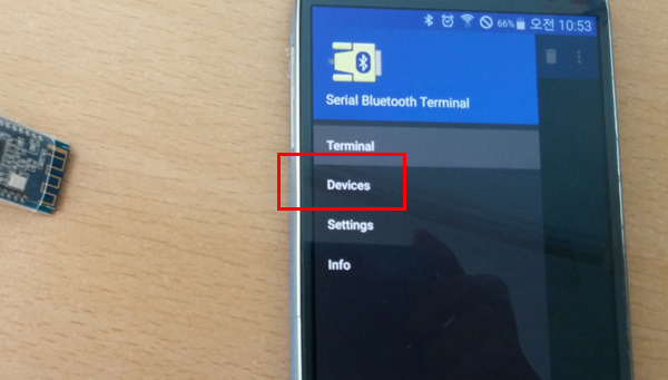 Serial Bluetooth Terminal 어플을 실행해 줍니다