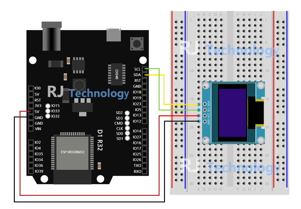 ESP32 우노 D1 R32 (BLE + WiFi) 보드로 0.96인치 I2C OLED SSD1306 를 사용해서 OLED를 출력해 보는 프로젝트 입니다